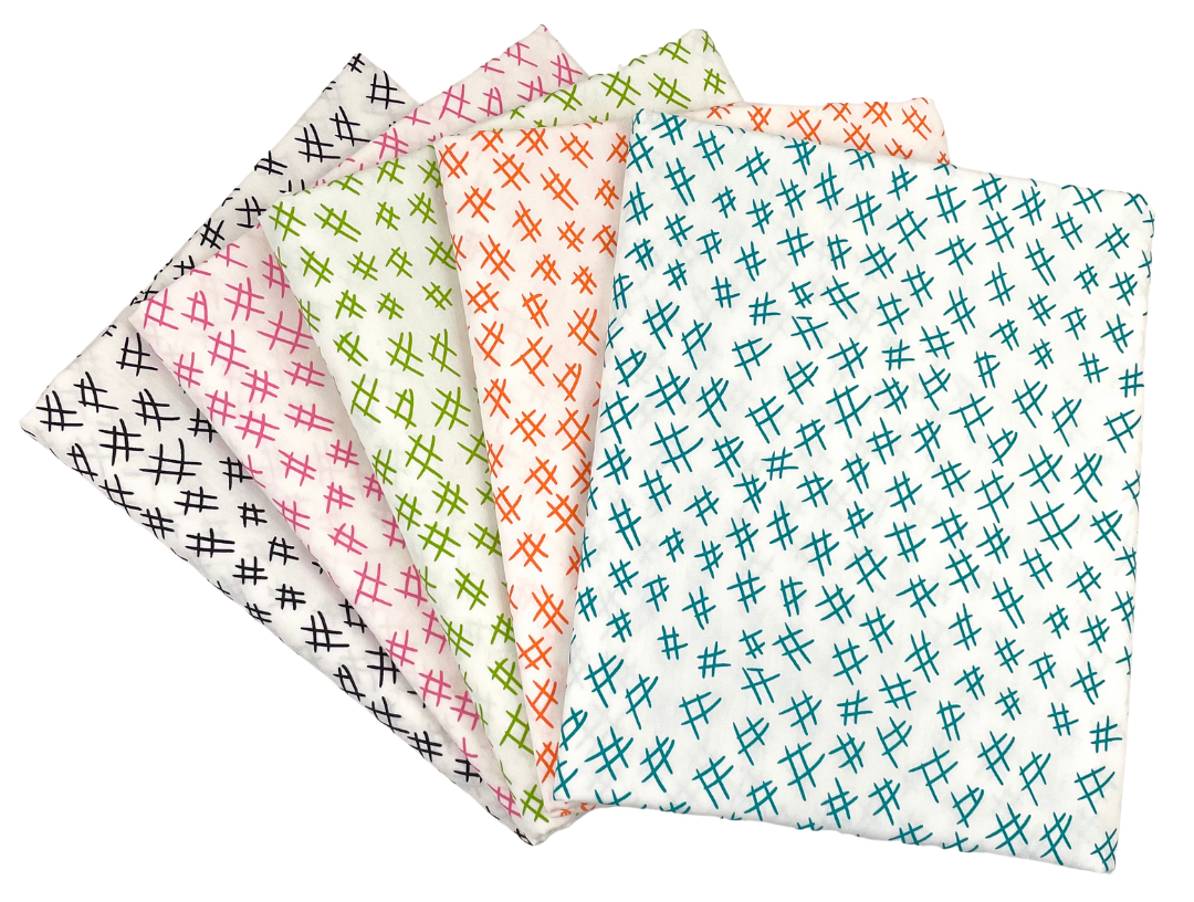 The Crossweave print took the longest to develop. I originally drew out a very simplified design years ago that I called “Dot Dash.” First tried to include it in my Gridwork collection, but it just didn’t fit. Then I wanted to squeeze it into Black, White & Bright, but again, it didn’t jive with the rest of the group. I’ve learned that I can’t force a design, no matter how much I like it!