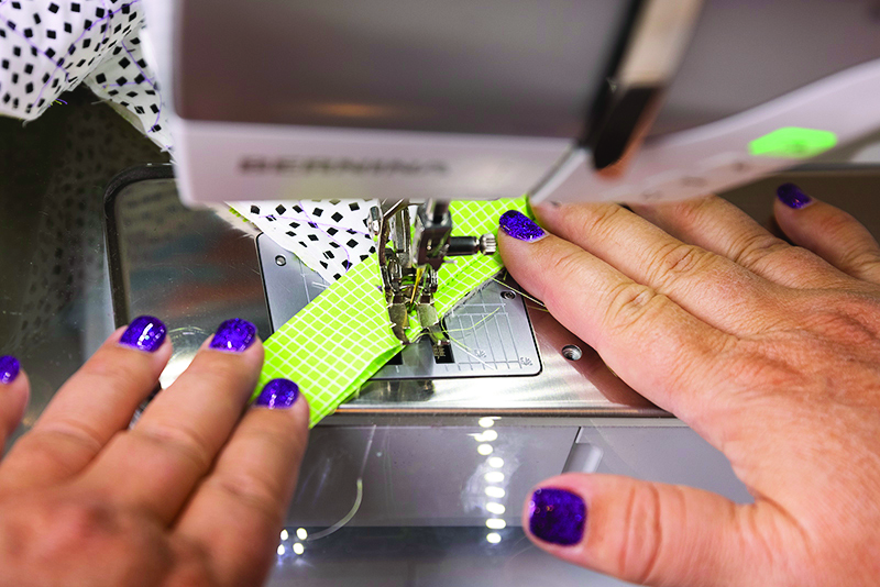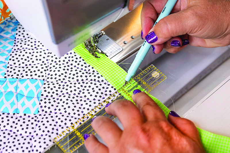 Some quilters prefer to stitch from right to left with the bulk of the quilt away from them; others like to stitch the opposite direction, from left to right with the bulk of the quilt towards them. There’s no wrong way to do it as long as you feel comfortable with the process.