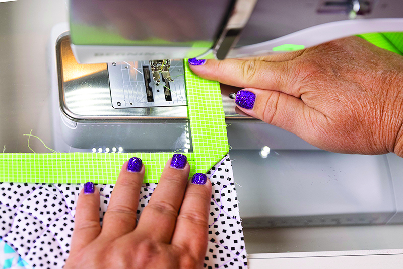 Step 7 – Stitch the next side of binding to the quilt edge until you reach the next corner and repeat this process for all four corners and sides.