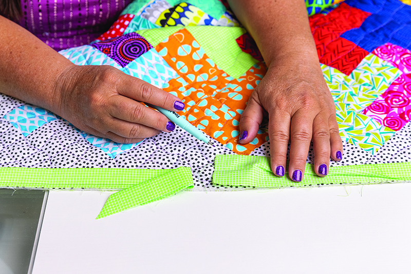When it comes to choosing binding colors, consider whether you want to match the binding to the border or to the background fabric to create a seamless look. Or you may prefer a contrasting fabric that will serve as a frame around the quilt. You can even add a touch of whimsy to your quilt by using up leftover fabrics to piece a scrappy binding.