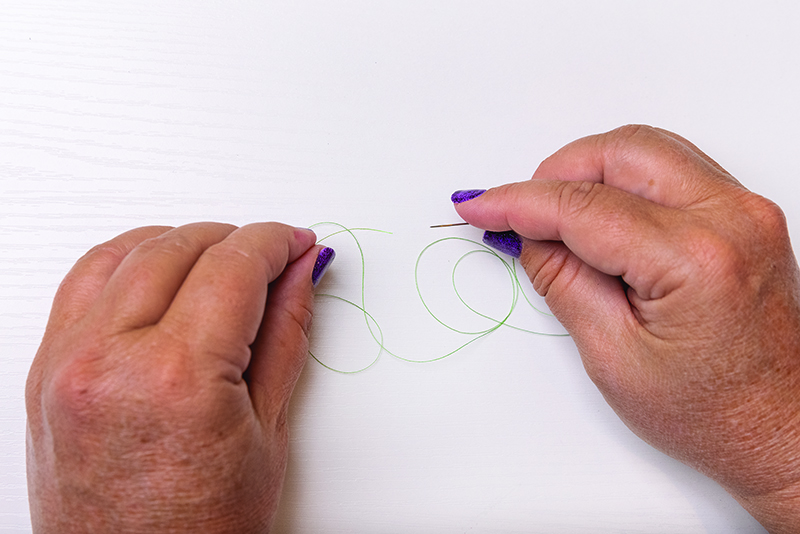 Tip – How to Tie a Quilter’s Knot: Hold the threaded needle in your right hand with the ending thread tail in your left hand.