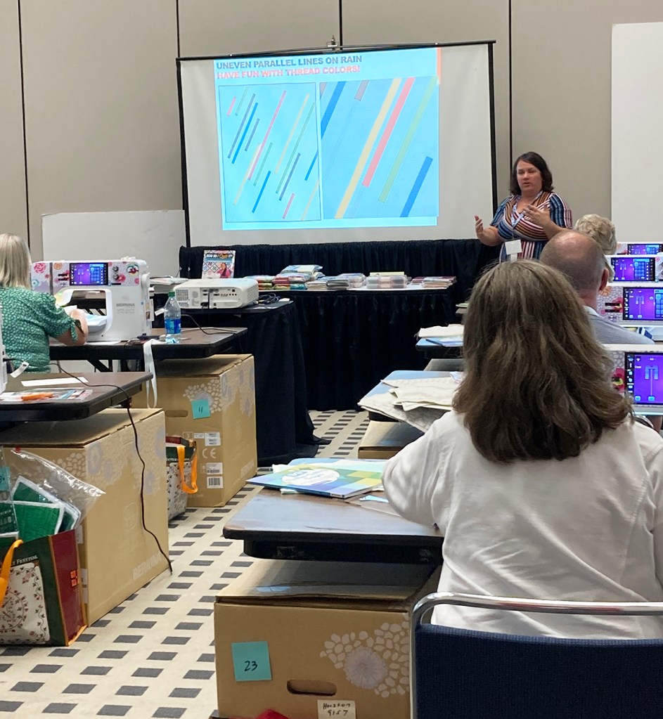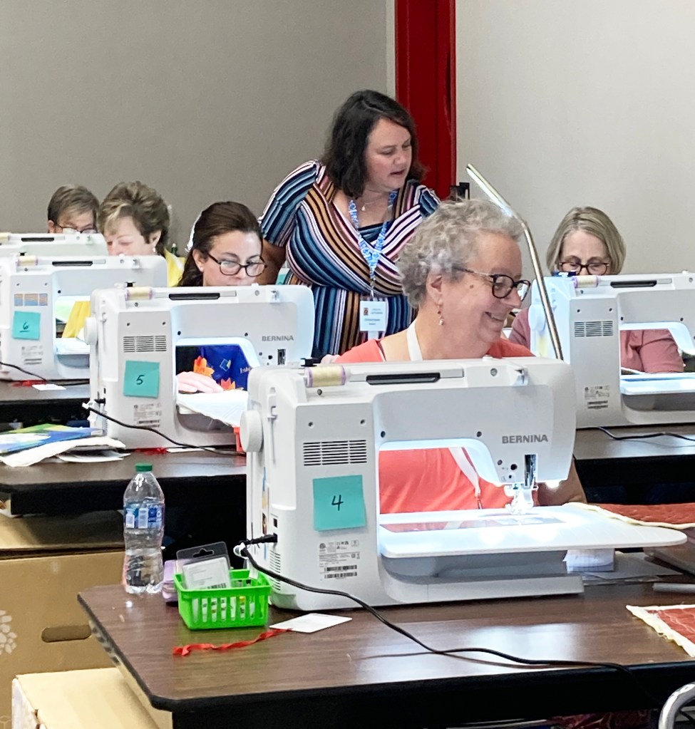 However, I was soo busy teaching that I didn’t have time for too many photos. But I brought the family along for support and my daughter was able to snap a few “action” pics in my quilting workshops.