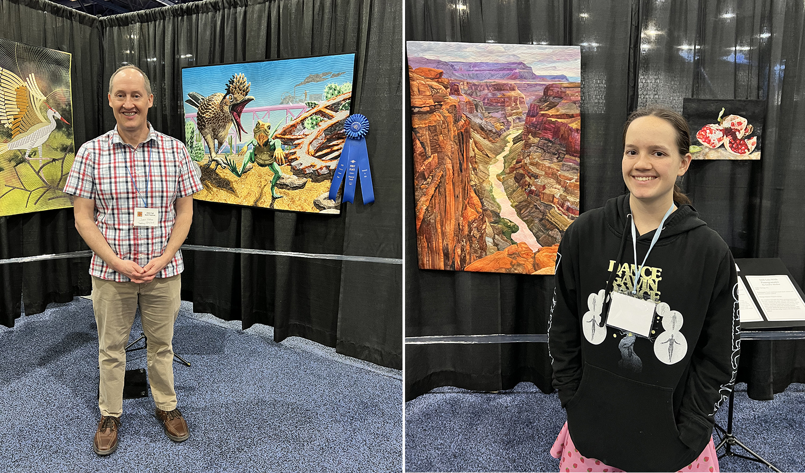 I’ll end with these great shots of my hubby and daughter. They really enjoyed viewing the quilts while I taught and it was fun hearing about which quilts were their faves. Usually I travel alone, so it was such a nice treat to have company this time around.