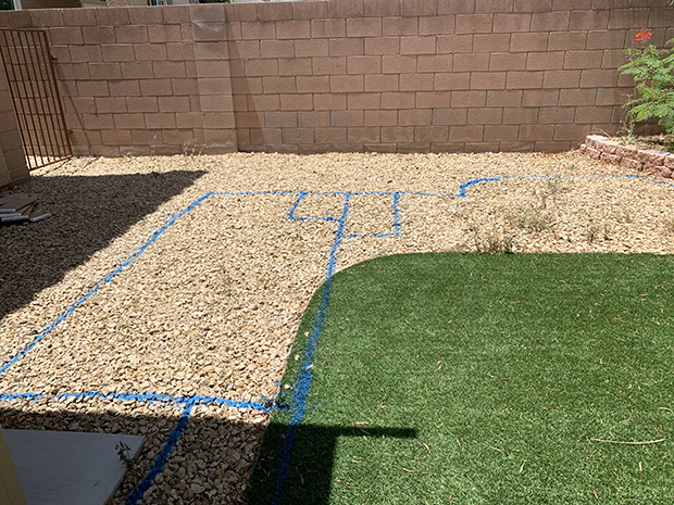 Once the design was finalized, the pool company came over and marked up the yard so that when the excavators come, they’ll knno exactly where to dig.