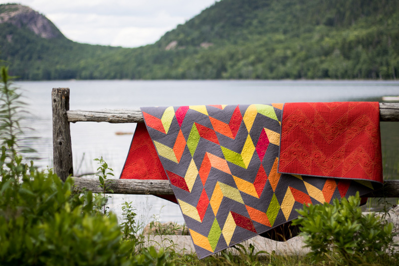 We used up some leftover 10″x10″ layer cake squares from my Geo Pop fabric line to make the masks, and I paired them up with some leftover binding strips and scraps. The layer cake squares worked great and were easy to cut down and make a variety of mask colors for family members to choose from.