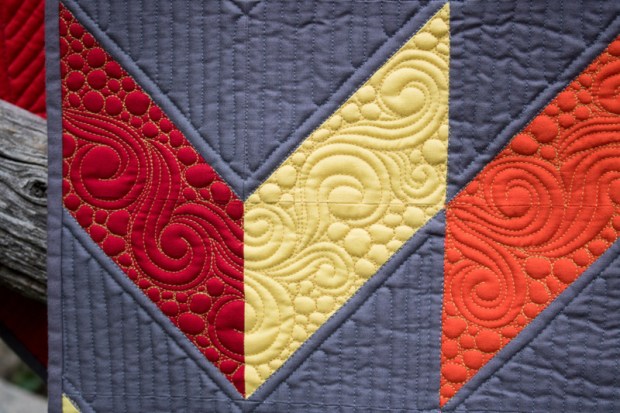 We made masks using 10″x10″ squares of Geo Pop fabric and leftover binding strips.