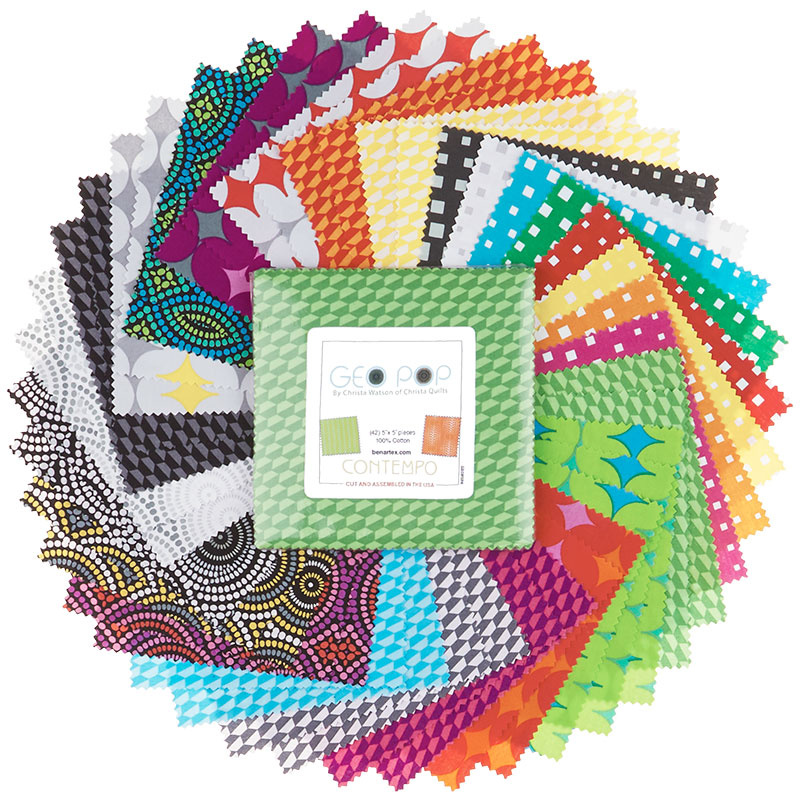 Stock up on 10 inch Layer Cakes, 2 1/2″ precut jelly roll strips, or 5″ charm packs. This includes everything from my oldest fabric lines, while they last!!