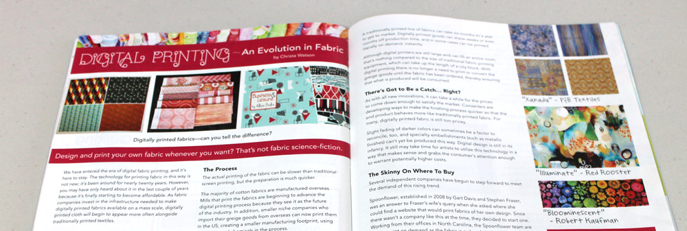 Article about Digital Fabric Printing in Quilty, March, 2015