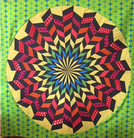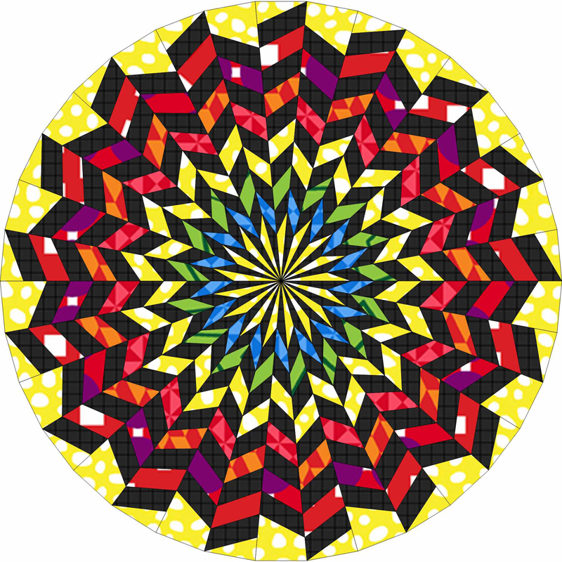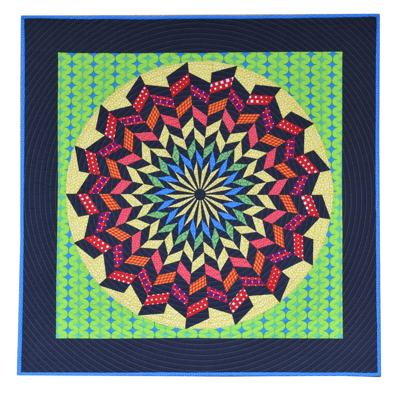 The moment of truth arrived; matching up all the points of the two halves while dealing with all the layers meeting up at the center point. I listened to my own advice and sewed very slowly and I am happy to say I nailed it on the first try! (There may have been a happy dance or two after that.) At that point, I knew a pattern had to be created for Hypnotica.Click the image above to enlarge. Click here to order Hypnotica Quilt Pattern.