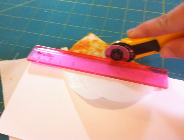 Measure the perimeter of your quilt so you know how many strips to cut. Lay it out on your cutting mat or use a measuring tape. I folded my quilt in half to make it easier to measure. Divide your perimeter by 40 inches (the useable length of one strip).