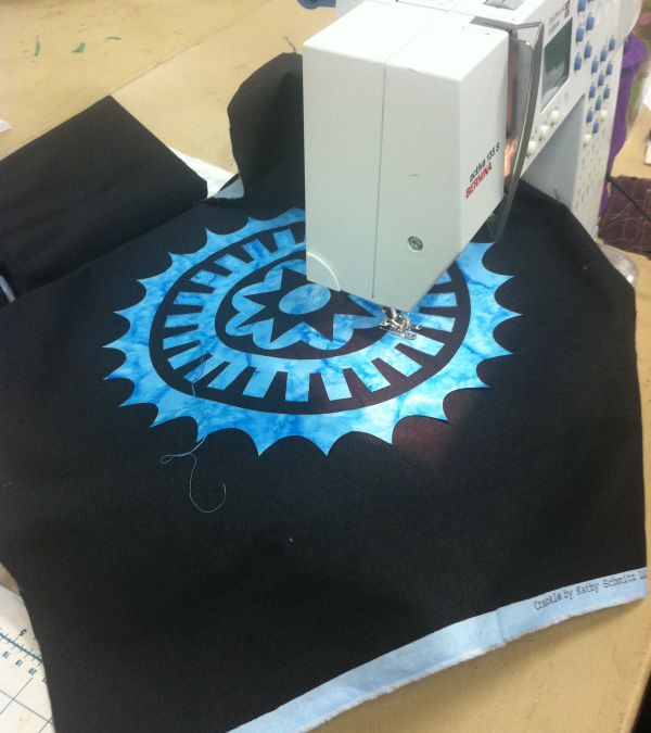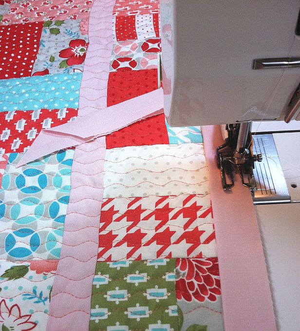 I used the same decorative serpentine stitch for the binding that I used for the quilting.