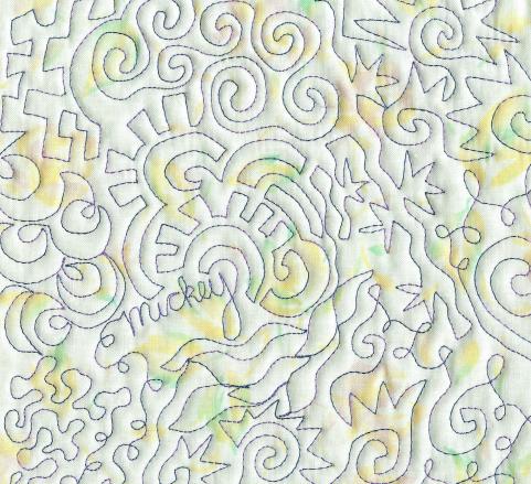 The first day I took an outstanding machine quilting class from Mickey Depre (I blogged about it here). Judy took machine quilting classes from David Taylor and a strip piecing technique from Elsie May Campbell. We love learning from the best teachers!