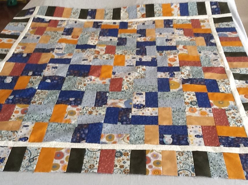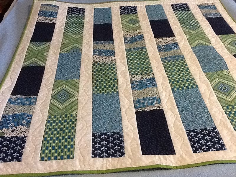 Ellen from Oklahoma was so excited about this project that she’s already completed her first baby chevrons quilt and is now making another. She made her first quilt using one novelty focus fabric featuring owls for the zig zags with a cream background.