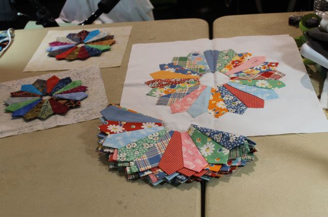 The prints in this quilt are pretty busy so it’s hard to see the quilting, but I really enjoyed quilting it densely with 2 different designs in each block – that’s a total of 48 different motifs in one quilt!