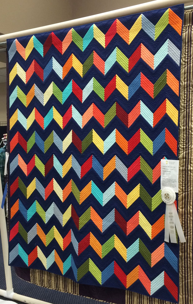 Overall, I’m very pleased that the judge liked my bold bright colors and my busy fabric prints. The quilting wasn’t the star of the show in any of these quilts – and in fact, 2 of them utilized very simple walking foot quilting. I haven’t been entering as many quilt shows this year because I’ve been so busy designing fabrics and writing quilt patterns. But this was just the boost I needed to make it a priority once again!