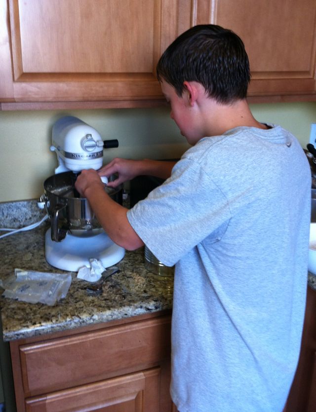 Jason Jr. made the dough while Jenna helped me roll it out and cut the shapes.