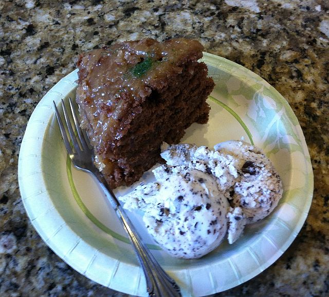 And here’s our favorite creamy frosting recipe to go with it, from AllRecipes.com. You know what the special ingredient is? Sour cream! It blends well with the powdered sugar for some yummy creamy goodness.