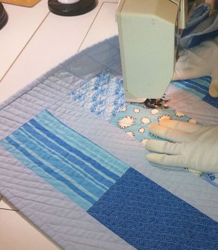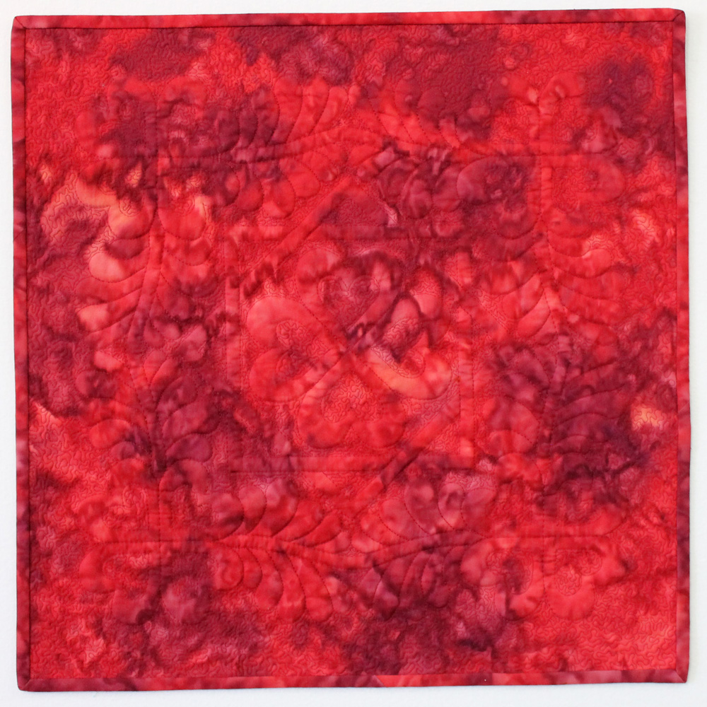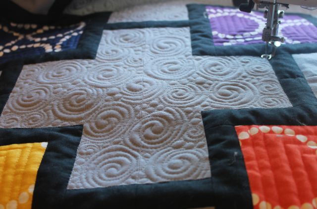 It cannot be stressed enough: you need to practice a lot to get really good at FMQ. Make several practice sandwiches by inserting a piece of batting between two scrap pieces of fabric. It will take some time to find a rhythm that you are comfortable with. It took me a good solid year of FMQ to get to where I was happy with it.