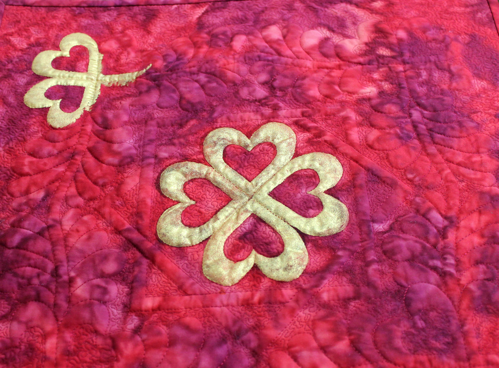 When the bulk of a quilt gets too much to handle, I simply move and “smoosh” it out of the way. If it’s been basted properly, all of the tugging, pulling and scrunching of the quilt will not cause any problems.