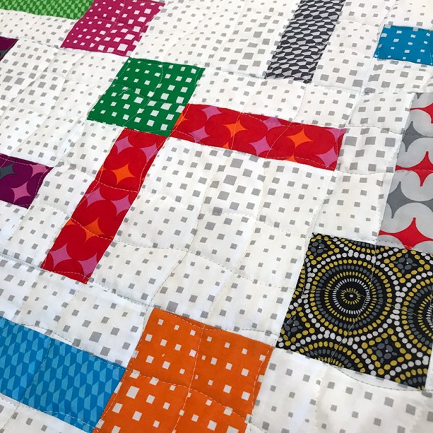 Fabrics in the quilt are a mix of Geo Pop, Gridwork, Abstract Garden and Fandangle