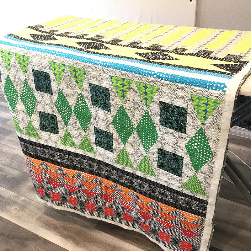 And now we get to my favorite part of making a quilt – machine quilting!!! There are so many different ways to quilt this quilt. Heather Black did an amazing job custom quilting hers, and I took the opposite approach with one of the simplest designs you can do – decorative machine stitching.