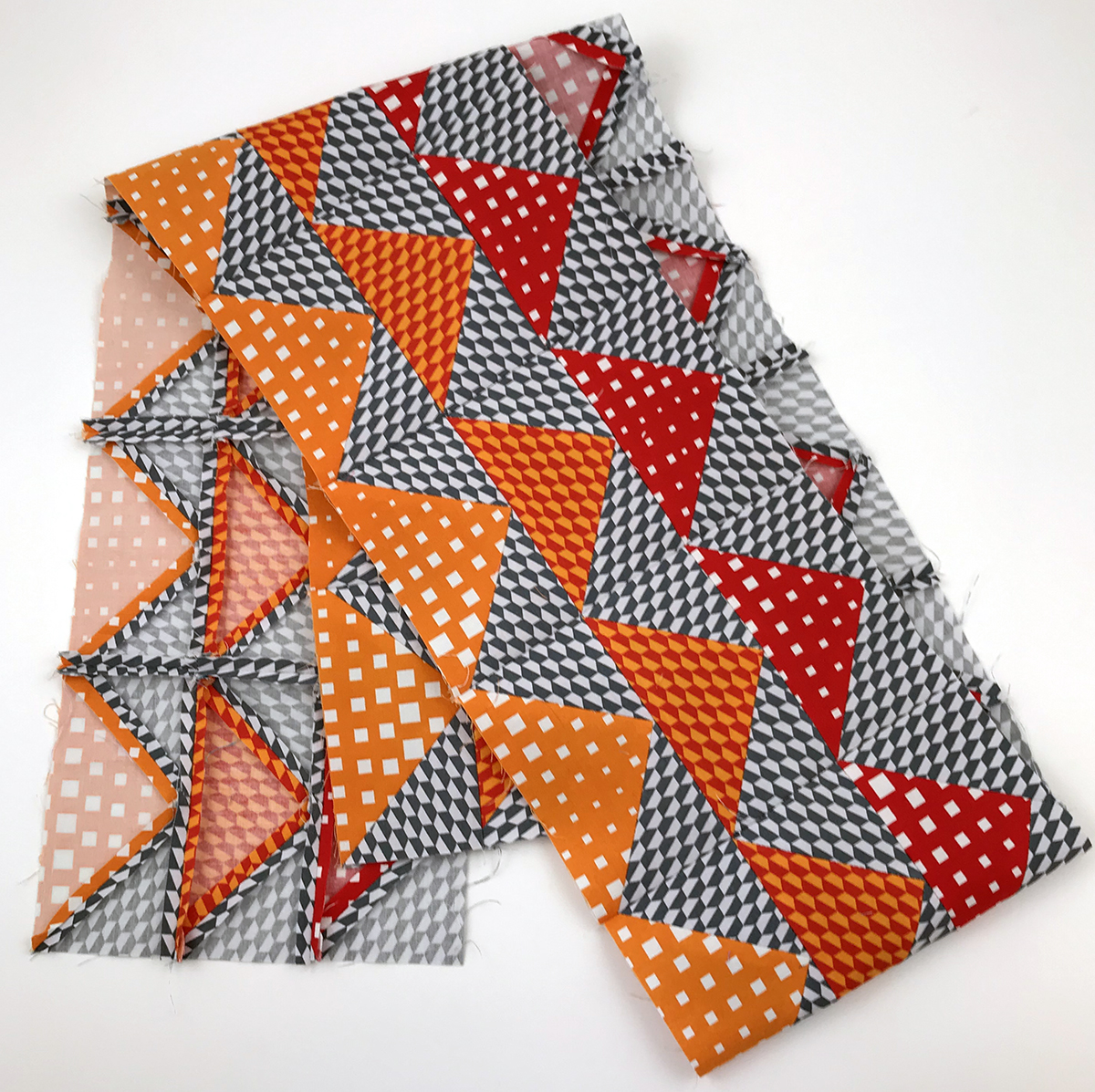 Once all 9 rows of Infrastructure have been sewn, it’s time to sew them together. They may look a little wavy, but if you sew each section in opposite directions, that will help eliminate some of the waviness.
