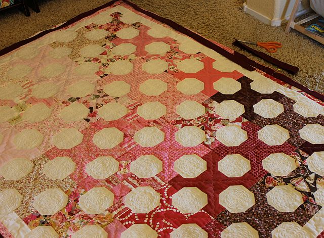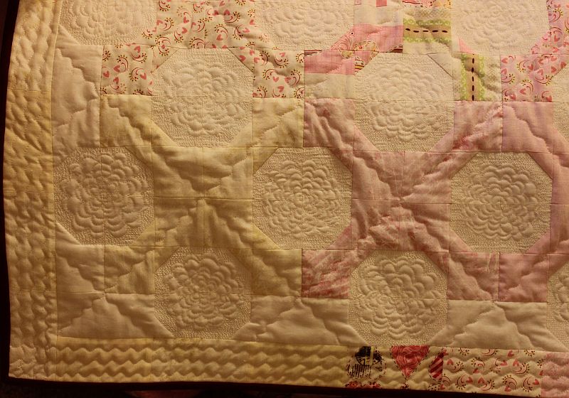 You can see that I’ve left in most of my basting pins. I will remove them as I need to next week when doing the decorative free-motion work.