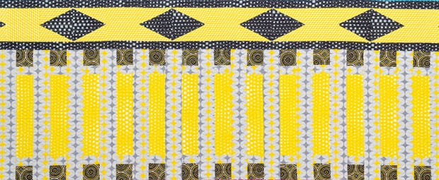 So this time, I’m using the yellow Tiny Hex print in yellow for the anvil blocks and Op Squares charcoal for the background.