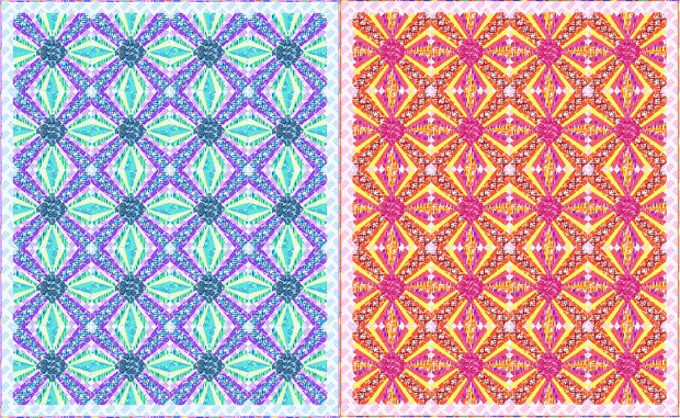 And these are the final look for the main print in Fandangle. There are many steps that happen between these images, but you’re getting the idea of how it works.