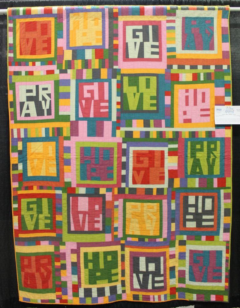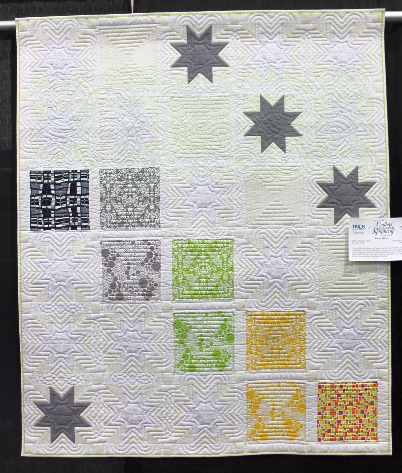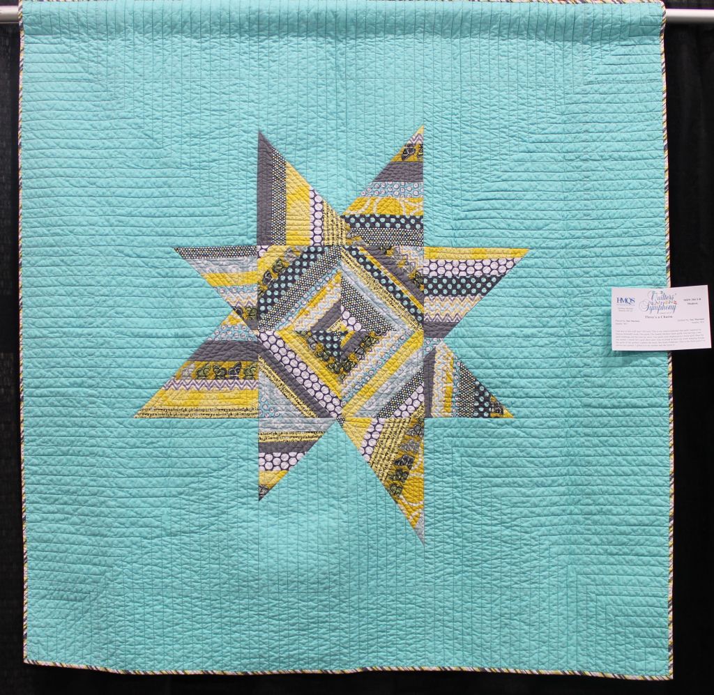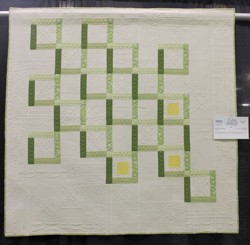 The only thing I wasn’t happy about HST (besides the bleach stains) is that doesn’t hang well because I used a woven textured background fabric. Because of the looser weave, the background ended up stretching too much as I quilted it.