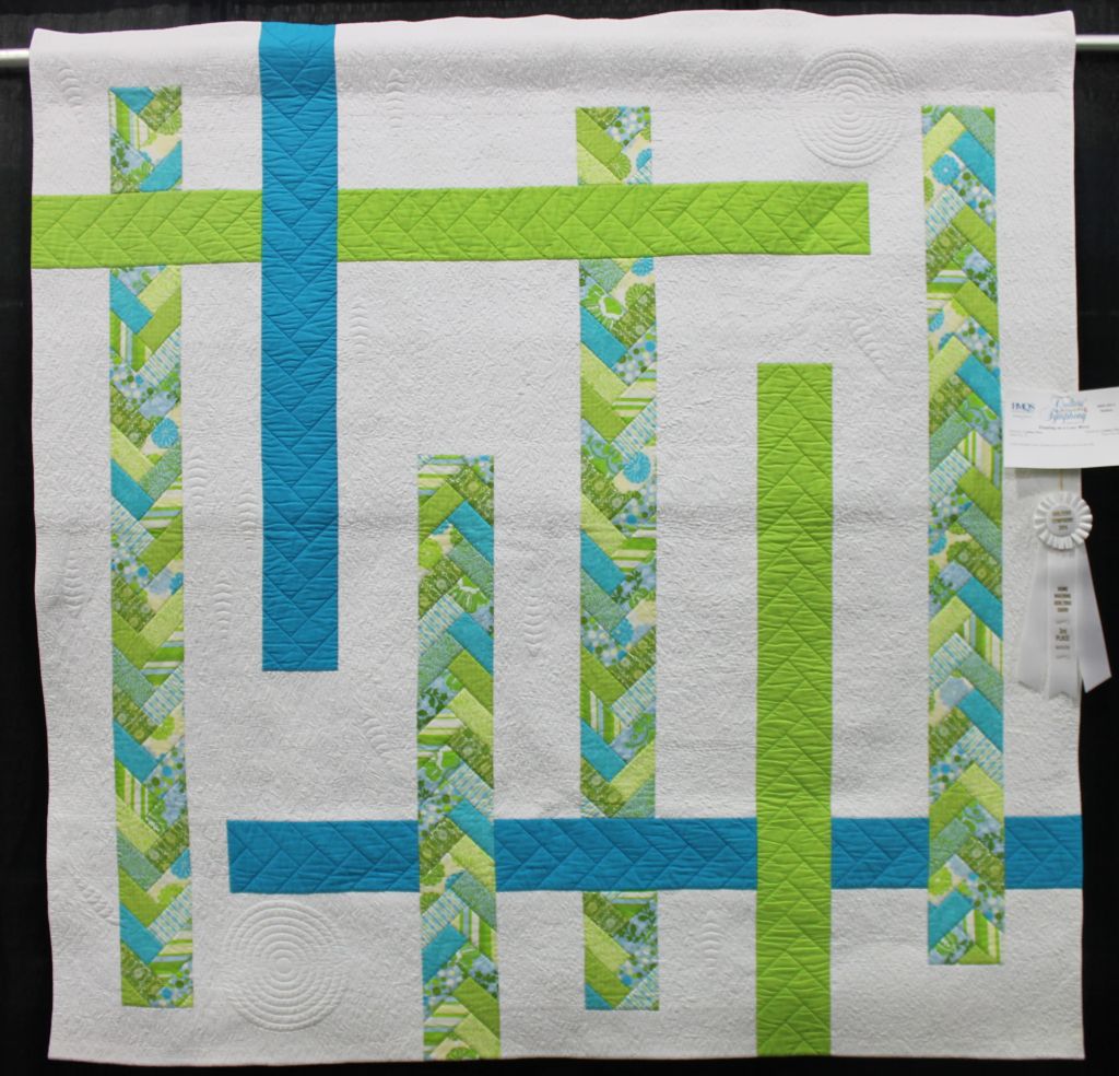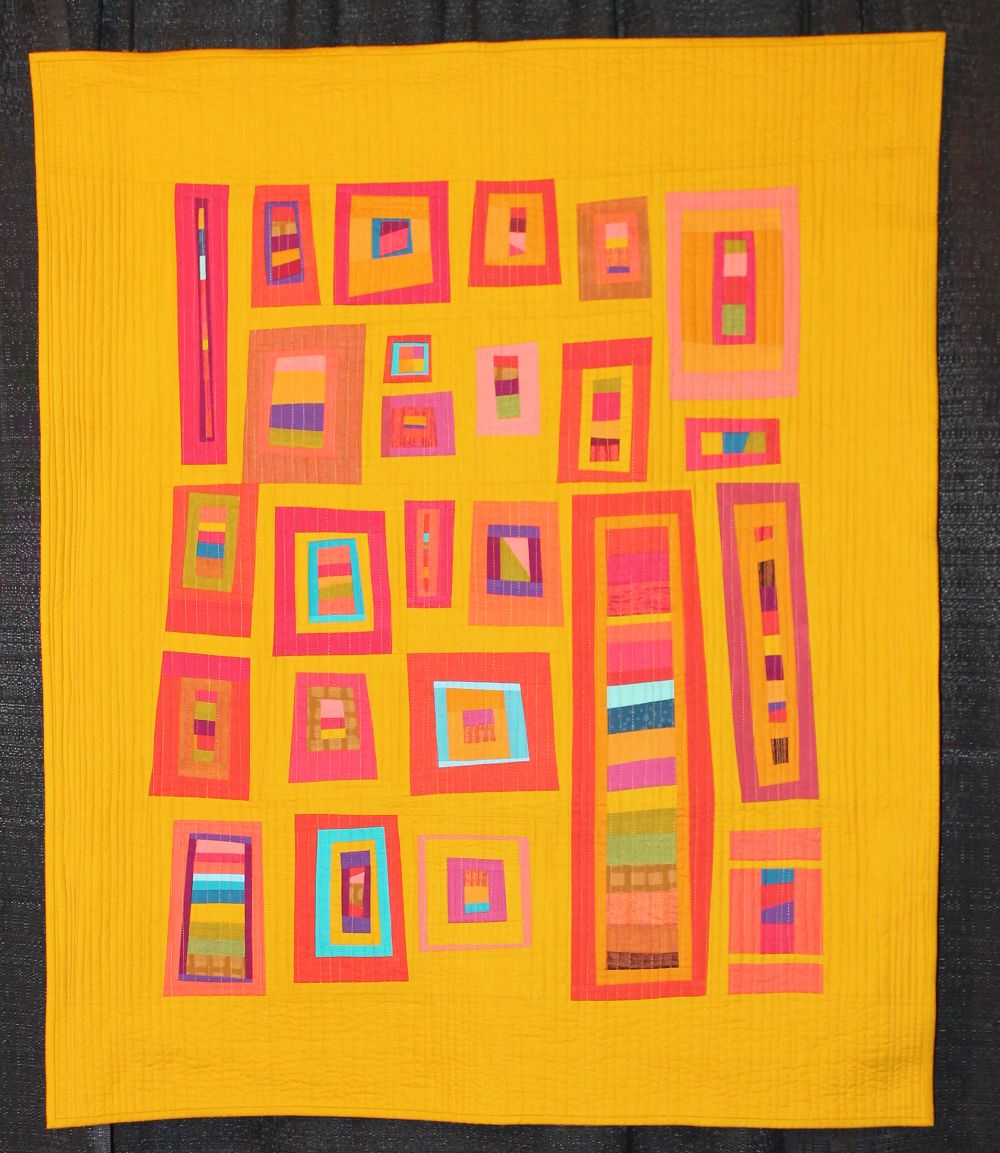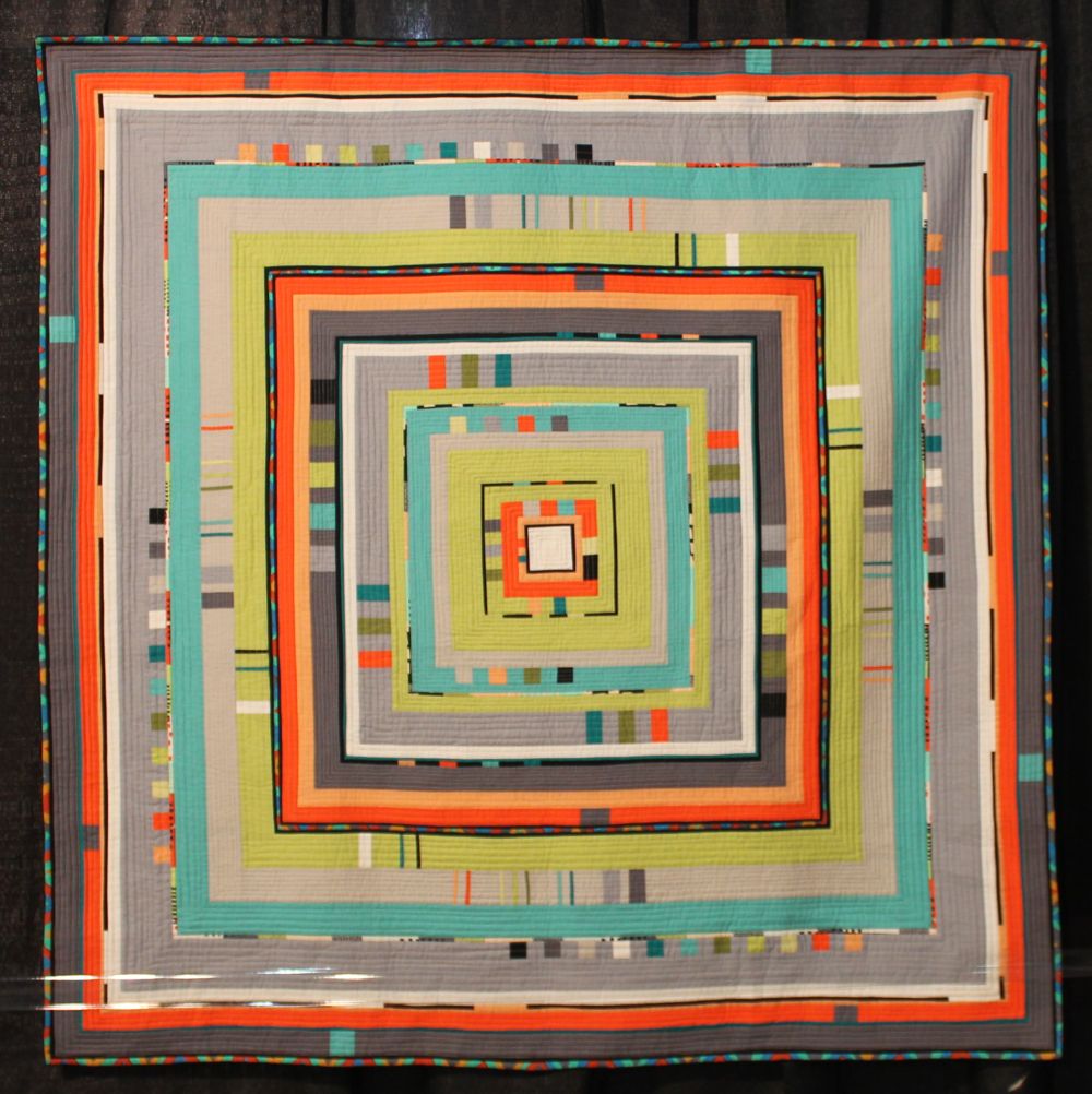 This quilt has gone on to win an award at a local quilt show and has been in a couple of traveling exhibitions of modern quilts. This is also the quilt I talk about when I share the importance of batting and basting in my lectures. (Originally I used a polyester batting for Modern X which created all kinds of puckers because it’s so slippery. I un-quilted, re-basted, and re-quilted this quilt using a cotton blend batting and was much happier with the results!)