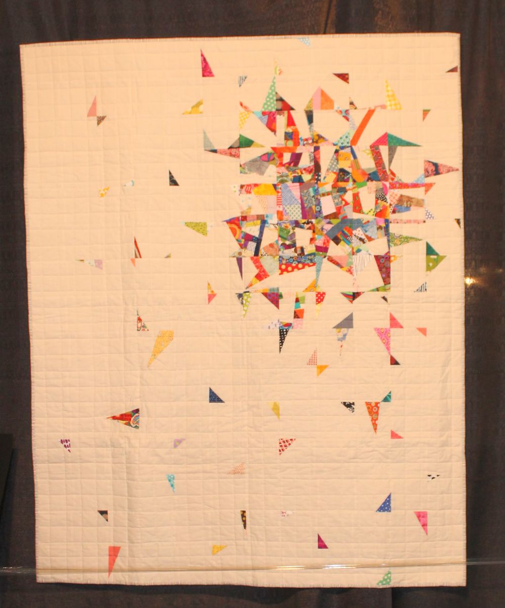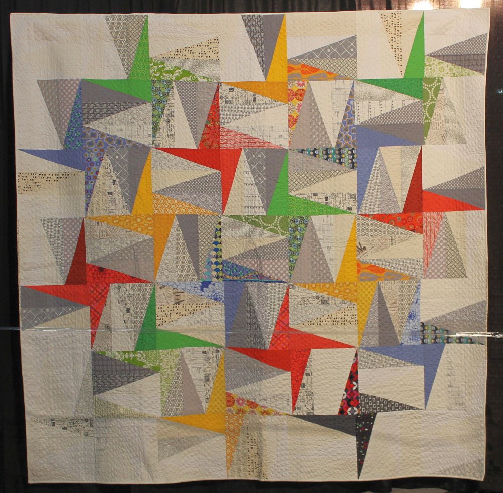 HST (Half -Square Triangle) was originally patterned way back in issue 5 of Make Modern Magazine. When I originally made the quilt in 2015 I knew I had created a special design and wanted to enter it into QuiltCon for 2016. However, when I went to wash the quilt, I used a “gentle” wash powder that ended up bleaching parts of the quilt!