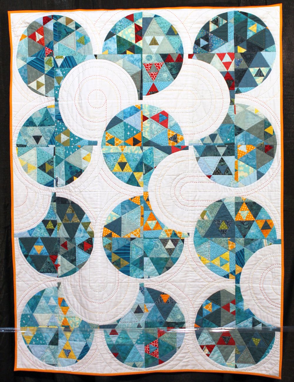 I gave a nod to the original HST with a touch of straight line quilting and modern spirals.