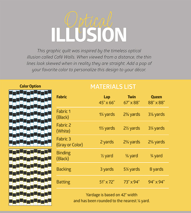 Megan G. used purple for her Optical Illusion quilt and I love it! This design works in so many great combinations. Pay attention to the instructions for the values of each fabric so that your illusion shows up nicely.
