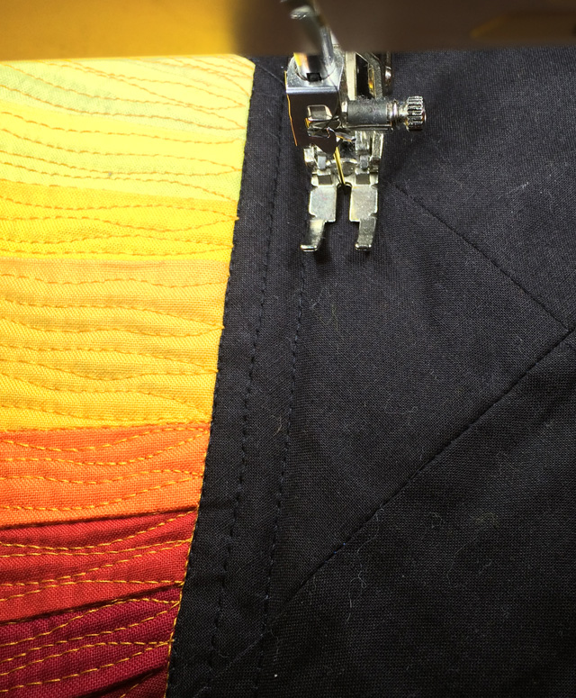 You can see a shadow where the fabric is sticking out far enough for the seam allowance.