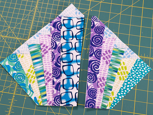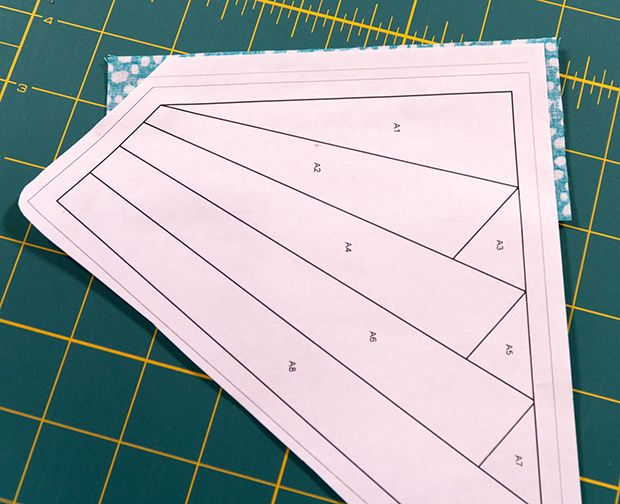 If you can cut the shapes above, you’ll have no problem foundation paper piecing – I promise!! Abstract Garden fabric shown is for BOTH colorways of Pieced Primrose.