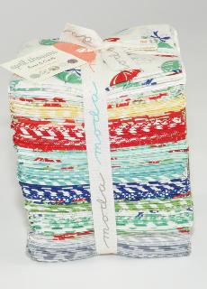 Shimmer includes a beautiful assortment of neutrals with just a hint of sparkle. Modern geometrics are always a favorite of mine! The precut line includes a 25 piece fat quarter bundle (one of every fabric from the line), a regular size roll up (4o – 2 1/2″ strips), and precut 10″ squares. I just checked my inventory and these guys are selling out fast!