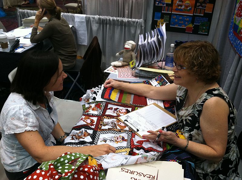 Anyway, we got to meet with many of our fabric vendors to preview the upcoming fall lines and order oodles of fabric! Here I am with one of my favorite sales people, Katie M. from Quilting Treasures.