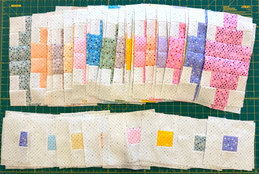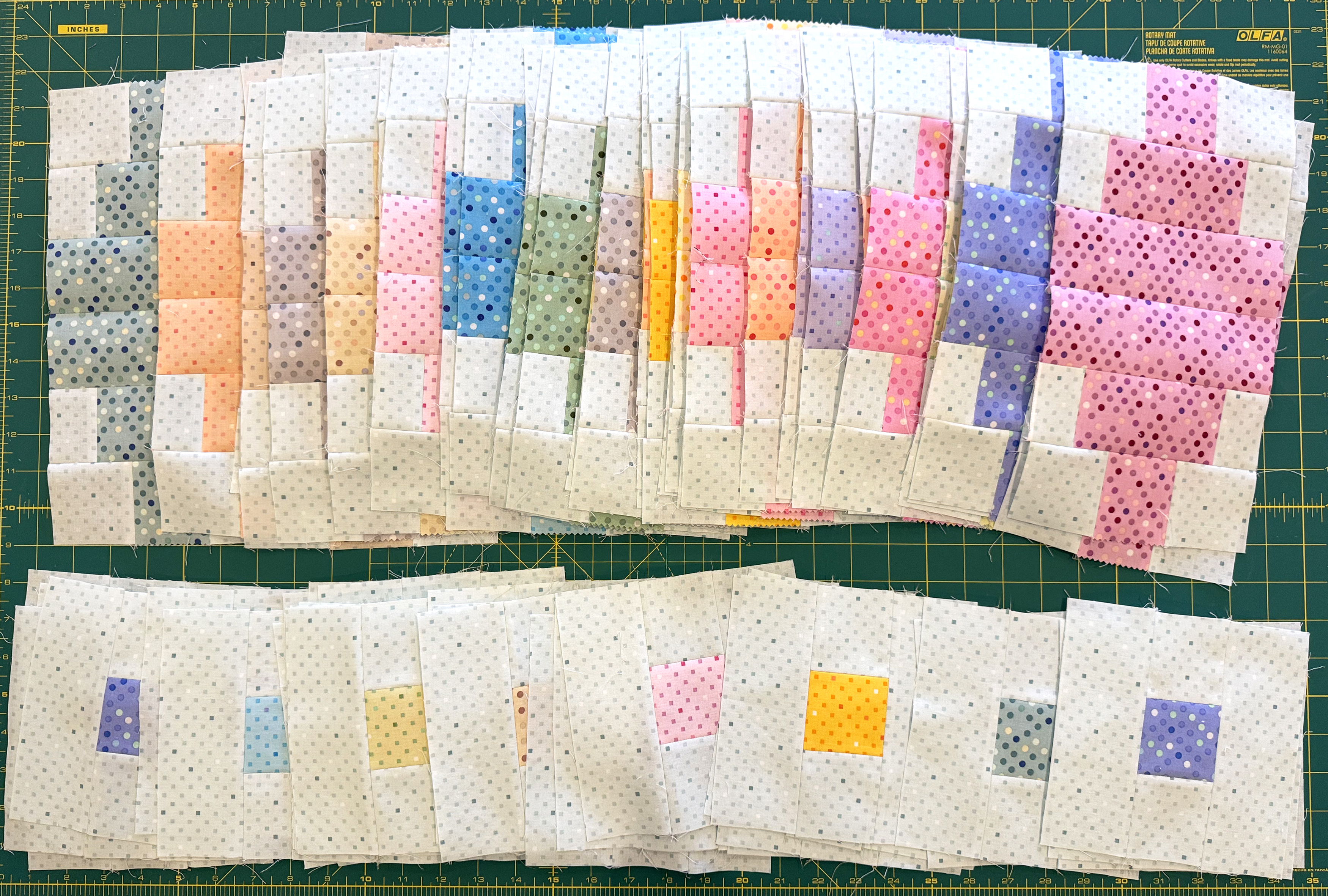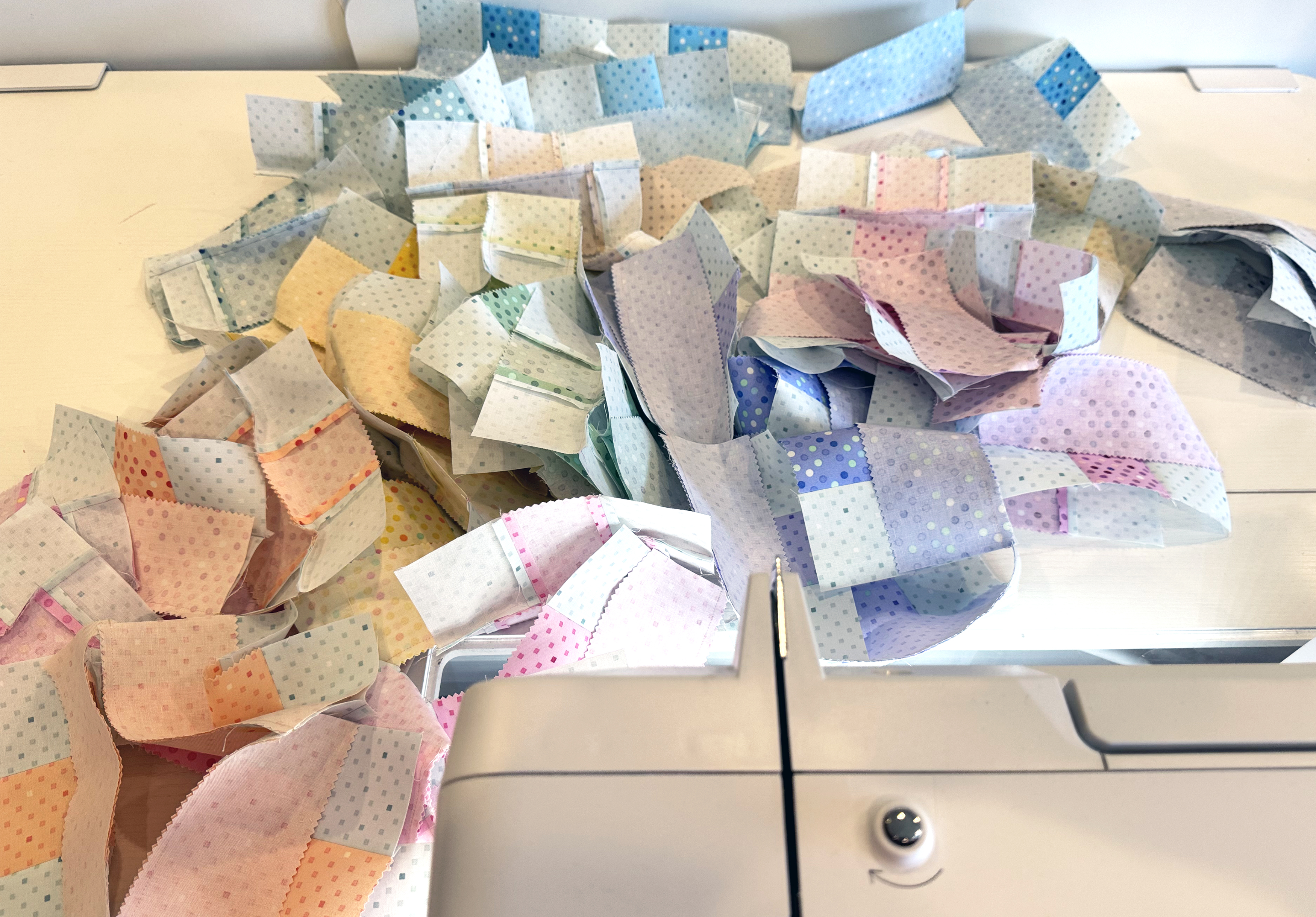 Here’s a detail shot showing off the custom quilting of the colorful version of Interlinked. And since I’m using gray thread on busy gray fabric, you can see how it blends in and you can hardly notice any mistakes. Instead, you can only see the delicious texture!