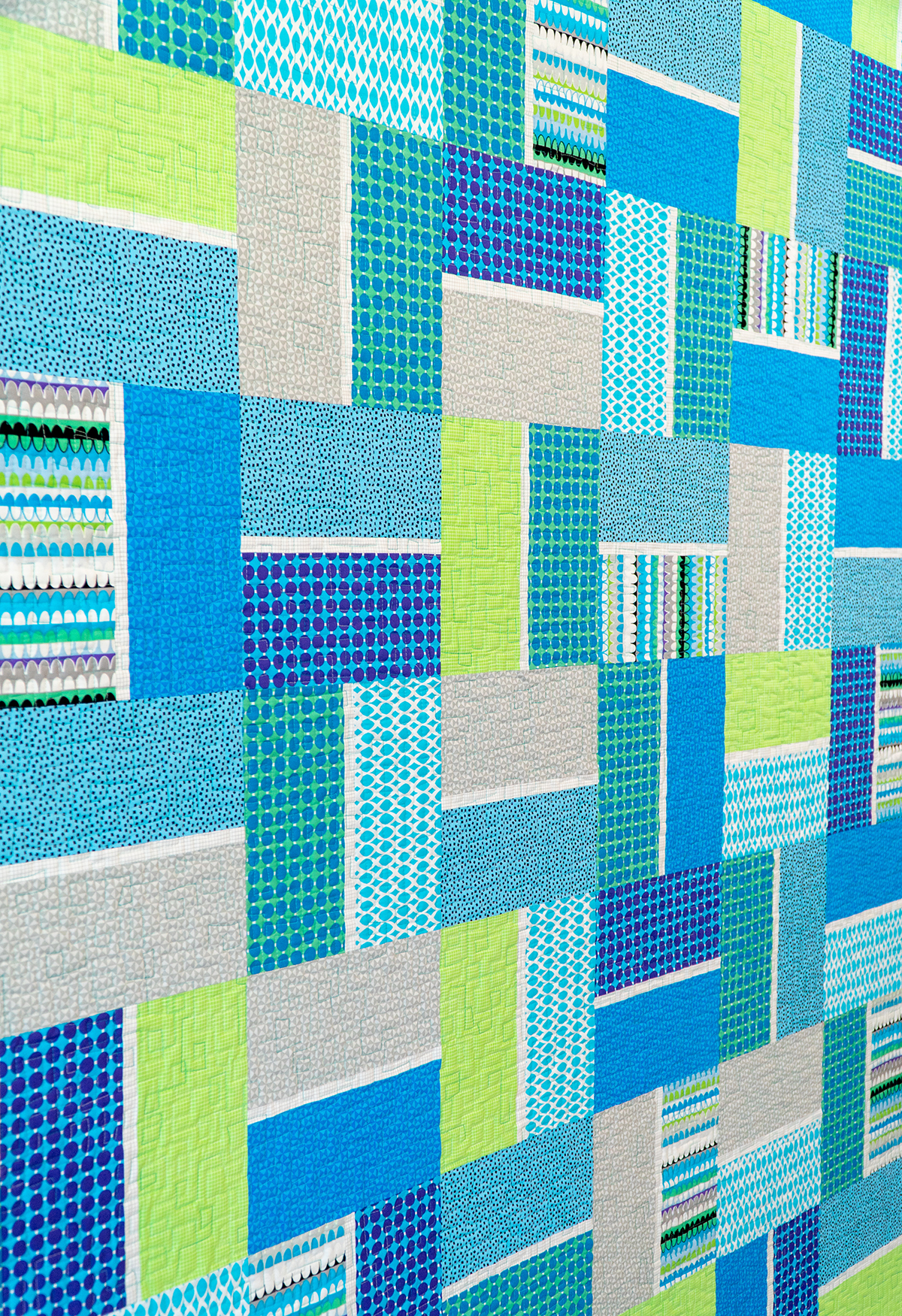 One final tip to share today: don’t stress too much about perfection. Do your best to line up the seams as you sew the quilt, but notice the lower left corner of the image below. The turquoise and blue corners don’t match up perfectly in all the rows, but that’s ok. Once the quilt is quilted – you won’t even notice it!!
