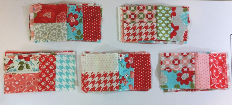 Next, sort your pairs into five stacks of ten block pairs each. This will be for 10 rows you will sew.