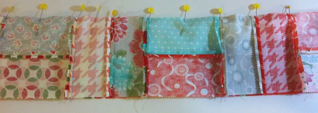 Sew the top two pairs together and then the bottom 3 pairs together. Of course, you can shuffle them around as desired and assembly line sew all the stacks to make it quicker.